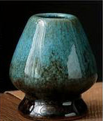 Includes a blue straight edged ceramic matcha bowl, blue ceramic Whisk Stand (Chasen Naoshi), handcrafted bamboo chasen (whisk), and matcha scoop.